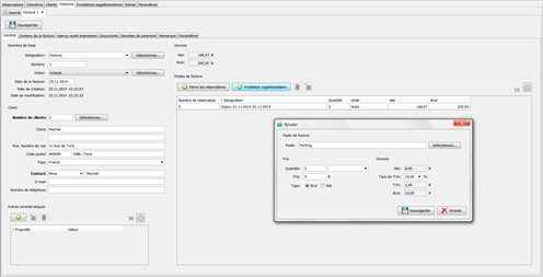 Le programme vous permet également de réaliser des factures de façon très aisée. Différentes taux de TVA peuvent être utilisés. Lors du premier lancement du logiciel, l’assistance du programme vous propose automatiquement de régler vos paramètres de base pour vos factures. Vous pouvez ainsi définir tous les postes, modifier les prix ou ajouter des réductions. Le programme contient des modèles prédéfinis de facture dans lesquels vous pouvez entrer les informations adéquates. Bien entendu il vous est possible d’adapter ses modèles selon vos propres réglages, ajouter des logos ou encore modifier la présentation selon vos souhaits. Chaque facture peut être sauvegardée au format PDF ou bien imprimée. Pour éviter la perte de données, une fonction de sauvegarde de celles-ci est intégrée au programme.