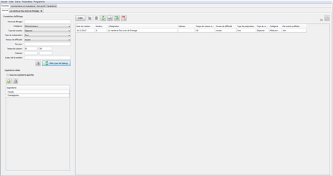 Grâce à différents paramètres (catégorie, type de préparation, temps de cuisson, nombre de calories, titre, produit), une recette du programme peut être trouvée très facilement.