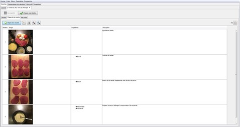 La partie la plus importante du programme réside dans la mise à disposition de photos des plats préparés ainsi que des différentes étapes de la préparation. Chaque étape est numérotée, contient une photo des ingrédients utilisés ainsi que les instructions de préparation.