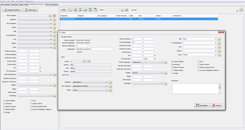 Comptabilité immobilière Le programme vous permet d'ajouter facilement des biens immobiliers. Chaque immobilier peut être catégorisé. Il y a deja certaines catégories standard prevues dans le programme, tels que appartement, maison, garage. Vous pouvez modifier ou compléter cette liste. Outre la catégorie vous pouvez enregistrer toute information sur les biens immobiliers y compis des photos.