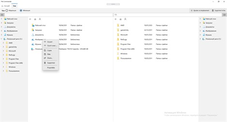 Le programme vous accueille avec un écran où vous avez un accès rapide à: "mémoire principale", "carte mémoire", dossier "Téléchargements", "photo", "Bureau", "musique", ainsi qu'un accès rapide au dossier utilisateur. File Commander est un simple explorateur pour les appareils Windows. Grâce à son interface utilisateur simple, il est extrêmement facile à utiliser.