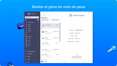 ► Plus qu'un simple gestionnaire de mots de passe sécurisés Passwarden est aussi un endroit sûr pour vos données importantes comme vos papiers d'identité, votre permis de conduire, vos contacts, vos données bancaires, vos comptes, etc.