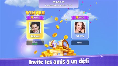 Jouez dans le mode Tournoi en temps réel. - Jouez contre d'autres joueurs en ligne, et montrez-leur qui est le roi du green. - Affrontez les meilleurs golfeurs du monde entier à n'importe quelle heure de la journée. - Le système de tournoi dynamique et passionnant satisfera votre ambition de devenir le champion. - Atteignez le sommet des classements de ligue et mondiaux grâce à vos techniques de pro.