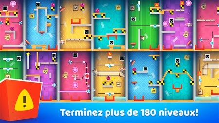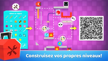 Utilisez les propriétés de 20 objets physiques pour compléter tous les puzzles: test-cube, bowling, trampoline de printemps, dynamite, plate-forme mobile, convoyeur, ventilateur, tube pneumatique, laser, portail, scie dynamique, bouton de commutation et de autres!
