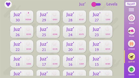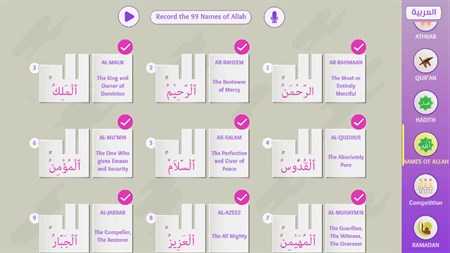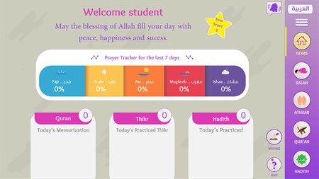 An application for teaching Islamic education to students (Islamic Treasures). The application contains 7 sections (Salah, Remembrances, Quran, Hadith, Names of God, Ramadan, Competition) in addition to the main page and displays the student's assessment, each section has its own content. We designed the application to meet the needs of young students to master Islamic education and teach them how to read Arabic fluently in an easy and fun way. We have also associated student performance evaluation with the teacher. This application is intended for school students from first to sixth grade and works only with schools that partner with us and we provide them with a teacher control panel