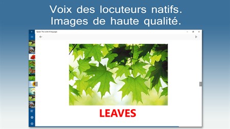 Il y a plusieurs raisons pour lesquelles vous devriez décider d’utiliser notre application, si vous commencer a peine à apprendre une nouvelle langue ou votre langue maternelle ou si vous décidez d’augmenter vos compétences dans celle que vous connaissez : -Notre application est construite à la pointe des méthodologies connues comme Doman et Shichida. -Nous augmentons constamment notre vocabulaire et améliorons l’application avec de nouvelles leçons à étudier constamment disponibles pour nos utilisateurs. - Nous proposons les langues les plus communément apprises telles que : Chinois, Ukrainien, Anglais, Portugais, Espagnol, Allemand, Russe et Polonais. -Nous n’utilisons pas la prononciation par ordinateur et tous nos mots sont dictés par des natifs du pays.
