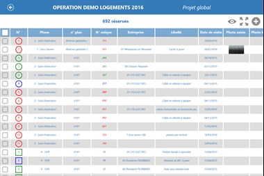 - Créez et gérez efficacement vos observations et réserves grâce à notre outil totalement collaboratif entre les différents acteurs du chantier - Réalisez facilement vos contrôles sur le chantier quelque soit la phase : auto-contrôles, bons à fermer, réceptions de supports, non conformités, et partagez les résultats - Accédez à vos documents à tout moment en mobilité (CCTP, pièces marchés, etc.) - Pointez l'avancement des travaux - Réalisez vos CR de chantier directement sur Kaliti en l'adaptant à vos besoins - Analysez vos données avec notre outil de statistiques (vision globale, synthèse, progression) - Pour les projets de réhabilitation en milieu occupé, gérez vos locataires et générez les états des lieux et fiches travaux - Gérez efficacement vos acquéreurs avec la gestion des choix et TMA intégrés, puis générez vos PV de livraison et enquêtes de satisfaction