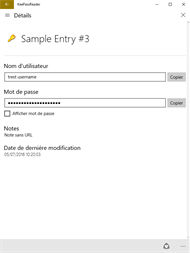 KeePassReader est une application qui permet d'ouvrir une base de données créée avec le logiciel PC KeePass 2.x et de facilement copier/coller les noms d'utilisateurs et mots de passes vers d'autres applications. Cette application permet uniquement la consultation mais ne permet pas de modifier ou d'ajouter des comptes dans la base de données.