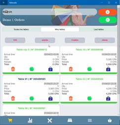 Fonctionnalité 1 Gestion de la caisse en boutique Les produits achetés sont scannés à la caisse ou entres manuellement s'ils n'ont pas de code barre 2 Gestion des ventes en restaurant/bar Les serveuses enregistrent les achats effectués par chaque table dans l'application mobile Kekouda® installée sur une tablette ou un téléphone. 3 Gestion de la cuisine en restaurant/bar Les aliments commandés en restaurant s'affichent automatiquement sur un écran de tablette. Le service de la cuisine met à jour l'état d'avancement 4 Vente en ligne sur le web et dans l'application Kekouda® Les boutiques sélectionnent les produits qu'elles désirent mettre en ligne. Chaque boutique a son espace personnel ou ses produits sont listés. Les produits sont également disponibles à travers les recherches. 5 Gestion des inventaires Kekouda® permet de mettre à jour l'inventaire soit sur l'application web ou mobile. L'application mobile permet également d'enregistrer les codes-barres des produits. Une alerte SMS* est envoyée quand le niveau d'inventaire est bas pour un produit. 6 Gestion des employés Kekouda® permet d'ajouter, d'activer/désactiver les employés. Les employés ont plusieurs niveaux d'accès dont le niveau serveuse, caissière ou propriétaire 7 Impression/E-mail/SMS des reçus Kekouda® permet d'imprimer les reçus de ventes au besoin ou de les envoyer par e-mail ou SMS 8 Paiement par carte de crédit, Flooz ou T-money En boutique ou en ligne, les clients des boutique Kekouda® peuvent payer par carte de crédit/débit, Flooz ou T-money 9 Alertes e-mail et SMS Une alerte SMS* est envoyée lorsque le niveau d'inventaire est bas, une nouvelle commande est effectuée en ligne ou annulée. Un e-mail est également envoyé en ces circonstances et d'autres. 10 Supporte l'anglais, le français et plusieurs monnaies. Kekouda étant une place de marché globale supportée l'anglais, le français et plusieurs monnaies. 11 Tableau de bord et statistiques Un tableau de bord muni de graphiques interactifs et les états permettent de visualiser les ventes, leurs évolutions et d'analyser la rentabilité. 12 Gestion des livraisons. Calcul des coûts de livraisons Kekouda® permet de configurer les zones, heures de livraison et d'en calculer les couts