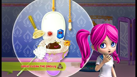 Eww! look at these germs all around the dirty washroom dancing happily after the mess everyone created over the party last night.Oh No! Mom and dad will be home, I have to get the bathroom clean up before they arrive, will you help me make this place sparkle again?