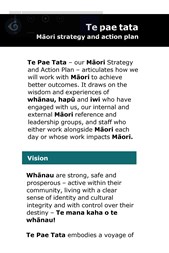 The app includes information on the Ministry’s Strategic Direction – Te Pae Tawhiti – Our Future, MSD’s Māori Strategy – Te Pae Tata, key Māori concepts and values, te reo Māori (language), tikanga (custom) and waiata (songs) to help staff understand more about our unique and shared cultural heritage and further express our MSD vision and purpose.