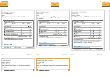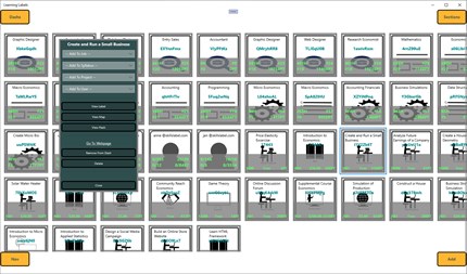 Learning Labels Dashboard is an effective way to manage collections, subsets of elements. The grid is responsive on all screens (including touch). Practitioners can create, update, delete, and access dashboards to represent what is required; for example, a course, class, personal lesson plan, pathway to a job, a curriculum, etc.