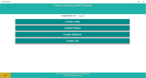 Learning Labels Create requires a valid logged in user account. From the application, a practitioner accesses a simplified user interface to create any of the elements. (These same elements are accessible online, where they can be modified for a deeper, richer definition.)