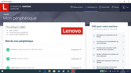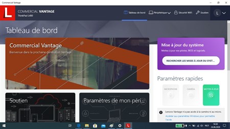 Lenovo Commercial Vantage est une solution de gestion des périphériques intuitive axée sur la praticité et la fonctionnalité, qui permet d'accéder aux fonctions et aux commandes de l'équipement de tout ordinateur commercial Lenovo Windows 10. Lenovo Commercial Vantage est une application gratuite qui permet aux administrateurs informatiques de contrôler les fonctions et de personnaliser la configuration d'un périphérique. Les paramètres et les mises à jour peuvent être gérés par l'utilisateur ou être configurés à distance par celui-ci. Accédez à des fonctions uniques et contrôlez-les, avec des fonctionnalités telles que la gestion de l'énergie, l'écran, l'appareil photo, le son, le clavier, la souris et le stylet. « REMARQUE IMPORTANTE : CETTE APPLICATION EST RÉSERVÉE AUX ENVIRONNEMENTS GÉRÉS ET NE DOIT ÊTRE TÉLÉCHARGÉE QUE SI CELA VOUS A ÉTÉ CONSEILLÉ PAR VOTRE ADMINISTRATEUR. Le téléchargement et l'installation de cette application sans l'avis d'un administrateur peut avoir un impact négatif sur le comportement de votre périphérique. Si vous êtes un utilisateur final dans un environnement non géré, téléchargez Lenovo Vantage à la place. »
