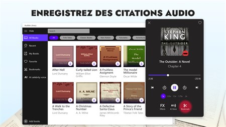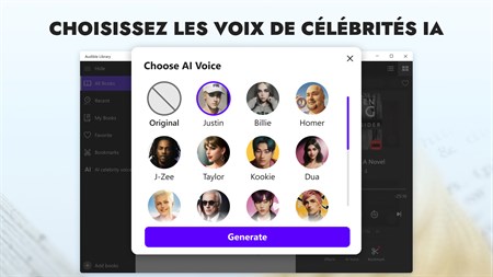 TECHNOLOGIE IA DE VOIX OFF DE CÉLÉBRITÉ Améliorez votre expérience de lecture avec un système d'IA très avancé, qui peut imiter les voix de vos célébrités préférées.
