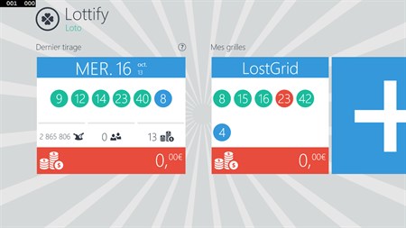 Grâce à l'application Lottify : Loto, vous pourrez voir les derniers résultats de cette loterie et peut être découvrir que vous êtes devenu riche ! Enregistrez les grilles que vous jouez régulièrement et consultez ainsi tous les gains de cette grille et les statistiques de vos numéros préférés.
