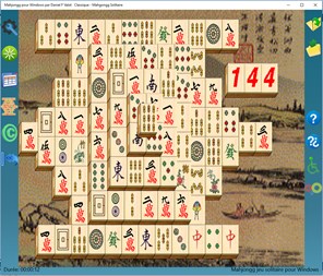 Mahjong solitaire est un jeu de solitaire qui utilise un jeu de tuiles de mahjong plutôt que des cartes. Les 144 carreaux sont disposés selon un motif spécial à quatre couches avec leurs faces vers le haut. Une tuile est dite ouverte ou exposée si elle peut être déplacée vers la gauche ou vers la droite sans déranger les autres tuiles. Le but est de faire correspondre des paires ouvertes de tuiles identiques et de les retirer du plateau, exposant les tuiles sous elles pour le jeu. Le jeu est terminé lorsque toutes les paires de tuiles ont été retirées du tableau ou lorsqu'il n'y a plus de paire exposée. Les tuiles qui sont en dessous des autres tuiles ne peuvent pas être vues. Mais par des annos répétés et / ou des redémarrages que certains programmes offrent, on obtient progressivement de plus en plus d'informations. Parfois, les tuiles ne sont que partiellement couvertes par d'autres tuiles, et la mesure dans laquelle ces tuiles peuvent être distinguées dépend du jeu de tuiles réel. Cette version de Mah jongg solitaire fournit 13 missions et 17 langues support.Il est capable de construire des jeux solvables en jouant à rebours. Vous pouvez également créer des jeux aléatoires. Annuler et rétablir fonctionnalité peut être très utile lorsque vous vous retrouvez pris au piège. La version de bureau inclut l'émulation de la souris pour les personnes handicapées et les raccourcis clavier pour jouer plus vite.