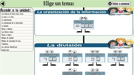 Repasa el temario de MATEMÁTICAS para niños de 8 años con nuestra divertida aplicación, completando el mapa de temas hasta llegar a realizar el examen final.