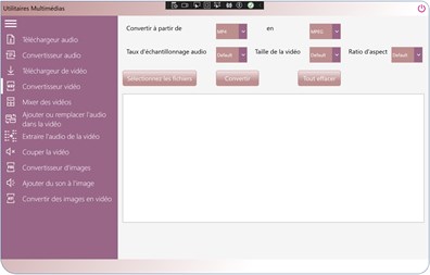 Les utilitaires multimédias sont la solution logicielle tout-en-un dont vous avez besoin pour traiter les fichiers multimédias. Il se compose de plusieurs outils spécifiquement conçus pour traiter différents formats de médias. Media Utilities permet de : ◈ Convertir des vidéos entre différents formats, y compris mp4, avi, mpeg, ogg, flv, wmv, mov et webm. ◈ Convertissez des fichiers audio entre des formats populaires, notamment mp3, flac, wav, aiff, aac, ogg et wma. ◈ Convertir des images (png, jpg, jpeg, bmp, tif). ◈ Joindre plusieurs vidéos en une seule. ◈ Extraire l'audio de la vidéo et enregistrer au format mp3. ◈ Supprimer l'audio de la vidéo. ◈ Ajouter ou remplacer l'audio dans la vidéo. ◈ Ajouter de l'audio à une image. ◈ Joindre plusieurs images et enregistrer en tant que vidéo. ◈ Téléchargez des vidéos de youtube. ◈ Télécharger des audios depuis youtube.