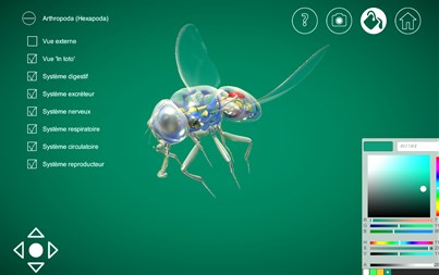 Les organismes présentés dans Metamorphos sont des avatars c’est-à-dire des reconstructions 3D d’organismes types fictifs regroupant les caractéristiques majeures de taxa de haut rang dans la hiérarchie linnéenne, généralement des classes. MetaMorphos permet d’analyser la morphologie externe des avatars ainsi que leur organisation systémique. Les systèmes organiques visualisés sont les systèmes digestif, excréteur, nerveux, reproducteur, circulatoire, respiratoire et tout autre système unique observé dans certains taxa (e.g., le système ambulacraire des échinodermes). Un système organique peut être visualisé seul ou avec d’autres systèmes, en vue in toto ou sans représentation du corps translucide de l’animal. Un curseur permet d’identifier les parties systémiques. Le métavatar peut être orienté dans toutes les dimensions de l’espace et une fonction « zoom » permet de grossir la partie du corps en analyse. Les morphologies interne et externe des larves sont également présentées ainsi que des schémas illustrant la composition tissulaire de certains organes. Les fonctions « snapshot » et « printscreen » du programme permettent de photographier les avatars (fichiers jpeg) dans la position voulue, ces fichiers pouvant être intégrés dans les dossiers des utilisateurs.