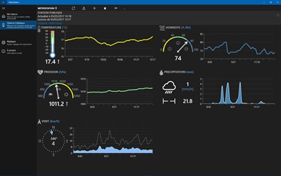 L'application est conçue pour suivre les informations de base sur les conditions météo actuelles telles que la température de l'air, la pression barométrique et d'humidité relative. Il affiche les lectures actuelles, les tendances et les données historiques sous la forme d'un graphique interactif. Une station peut être simplement sélectionné dans la carte, renommé et enregistré dans la liste des favoris pour une utilisation future. Développement continu de l'application, site officiel, support et forum de discussion. MeteoStation est disponible en application universelle pour Windows 10 (PC et mobile).