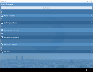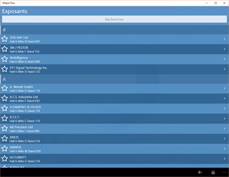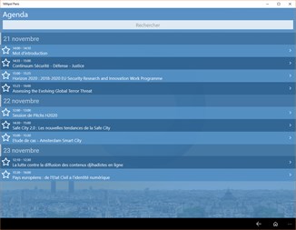 Milipol Paris 2017 met à disposition de ses visiteurs et exposants cette application mobile, véritable outil d'aide à la visite, qui vous permettra de consulter en temps réel un large éventail d'informations telles que : • La liste des Exposants avec les informations relatives à la société. • Le programme des conférences et les biographies des intervenants. • Les événements organisés sur le Salon. • Les informations pratiques et services disponibles sur place (restauration, transports, etc.) • Le plan interactif du Salon 2D/3D avec le traçage d'itinéraire.