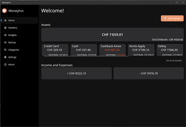 Money Fox a été développé pour vous aider à garder une trace de vos finances. Quel est votre budget ? Combien d’argent dépensez vous ? Quel est l'objet de vos dépenses ? Comment pourriez mieux investir ? Comment est-ce que vous pourriez économiser plus ?