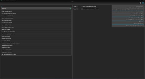 Avec cette application, vous pouvez créer des listes de vos films préférés, des listes de films que vous aimeriez regarder, des listes de films que vous possédez, etc. Vous pouvez soit ajouter des films aux listes individuellement, importer des bases de données Kodi (fichiers XML), des listes de films. titres ou importer des identifiants de film (IMDB ou TMDB) sous forme de fichier texte. Vous pouvez vous connecter à votre compte TMDB si vous en avez un et importer ou exporter des listes depuis votre compte TMDB.