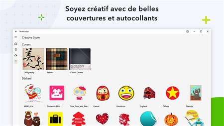FAITES PREUVE DE CRÉATIVITÉ + Faites de belles notes amusantes avec une variété d'autocollants et de couvertures* + 12 styles de papier à lettres classiques, y compris notes Cornell, agenda, papier ligné, papier graphique et plus + Personnalisez les couvertures de notes avec vos propres photos