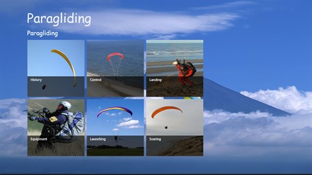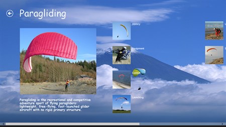 This application gives information about a sport in which a person jumps from a high place and uses a special kind of parachute to float down to the ground.