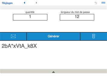 Création de mots de passe fiables et sécurisés: Pour générer des mots de passe aléatoires sélectionnez la longueur de passe (jusqu'à 100), le nombre de mots de passe (jusqu'à 200), choisir les caractères que le mot de passe peut contenir, puis appuyez sur Générer.