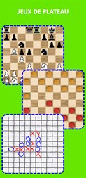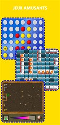 + Billard, avec les règles du snooker à 8 boules. + Jeux de société : Connect 4. Dames américaines. Jeu d'échecs. Othello. Bataille navale. Tic-tac-toe. + Jeux de réflexion : mémoire, fruits de singe, sudoku. + Pétanque : Le jeu français, dans notre adaptation originale...