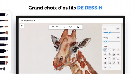 DIFFÉRENTS OUTILS DE DESSIN Nous avons essayé de tout prendre en compte, donc, nous avons ajouté des outils de dessin pour chaque type d’artiste. Créez des peintures claires et tendres avec le pinceau aquarelle Dessinez des lignes graphiques avec le pinceau-crayon Colorez votre création avec le pinceau-feutre transparent ou Explorez notre vaste collection de pinceaux pour trouver ce que vous aimez.