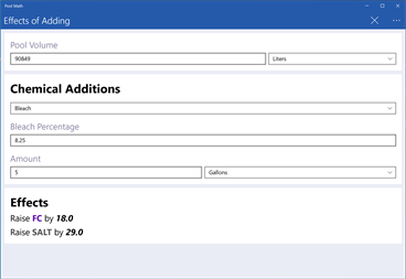PoolMath makes swimming pool care, maintenance and management easy by tracking chlorine, pH, alkalinity and other levels to help calculate how much salt, bleach and other chemicals to add. Keep swimming in your TroubleFreePool with Pool Math.
