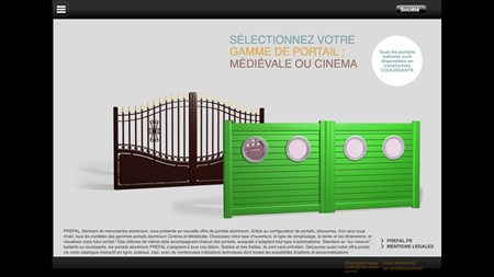 Le configurateur de portails Préfal pour imaginer en quelques clics votre futur portail. Choix de la gamme, de la forme et remplissage, de la couleur, des piliers, des portillons et clôtures. Ce configurateur professionnel vous permettra aussi de faire une simulation de pose sur un choix de décors prédéfinis ou sur votre maison en en faisant la demande.