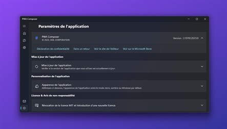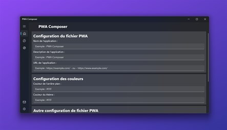 PWA Composer est une application puissante développée par SIDL CORPORATION qui offre un ensemble de fonctionnalités essentielles pour simplifier la création et la gestion d'applications web progressives (PWA) de haute qualité. Avec PWA Composer, les développeurs et les entreprises peuvent tirer parti des avantages des PWA sans avoir à plonger profondément dans la complexité du développement web. Voici une description détaillée de ses principales fonctionnalités :