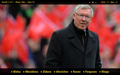 This is a quiz about the most famous football players and coaches. Guess the player or coach by photo! Check yourself and your friends. The quiz can play up to five people.