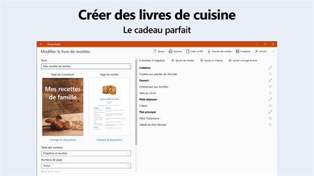 CRÉEZ DE BEAUX LIVRES DE CUISINE Créez des livres de cuisine à partir de vos recettes à imprimer ou à partager au format PDF avec page de garde, table des matières, mises en page personnalisées et plus encore.