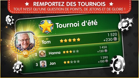 JEU DE CARTES POUR LE LOISIR - Engrangez de l'expérience et montez de niveau. - Le rami détend et entraîne votre mémoire. - Progressez pour figurer parmi les 10 meilleurs de la ligue. - Testez votre endurance avec les tournois et les tables longues durées.