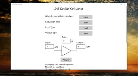 A decibel calculator made primary for students of SAE Amsterdam. So they can learn how to calculate decibels for their Audio education. But anyone is free install it. Requires : No rights, No adds and is free...