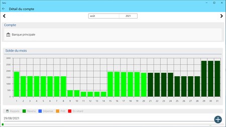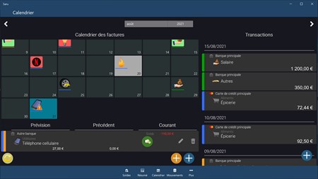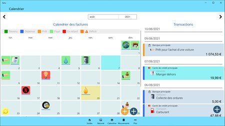 Planifiez vos transactions périodiques directement sur le calendrier. Le statut des factures est automatiquement mis à jour lorsque vous saisissez des mouvements et le calendrier vous donnera toutes les informations nécessaires pour ne jamais manquer un paiement.