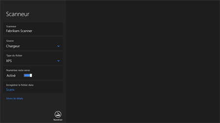 Si vous avez un scanneur, cette application simplifie la numérisation de documents et d’images, et les enregistre où vous voulez. Que vous numérisiez une photo à l’aide d’un scanneur à plat ou plusieurs pages en utilisant un chargeur de documents, l’application Numérisation est l’outil idéal.