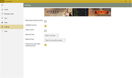 You've aced the audition and won a leading role. Fantastic, but... now you've got to learn all those lines! Scene Steeler can help. Load in your script and away you go.