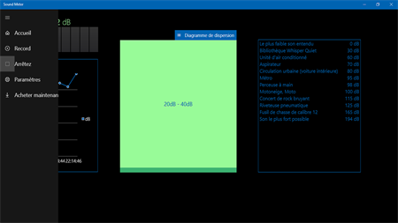 Cette application peut être utilisée pour mesurer le niveau sonore en décibels à un endroit particulier.