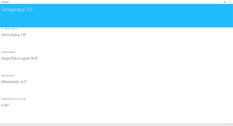 Möjlighet finns att få se temperaturen för den mätstation som ligger närmast dig på live tile.