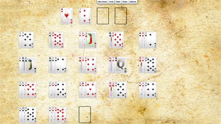 The Fan plays like La Belle Lucie solitaire, but with two twists. If you clear a fan, you can than place any King in its place. But because this opens so many additional possibilities, you are not allowed to reshuffle the playing field. Regardless, The Fan makes for an enjoyable solitaire that is fairly winnable if you take the time to plan many moves ahead. Enjoy playing.