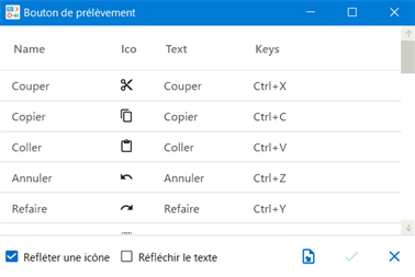 Les boutons peuvent être personnalisés de diverses manières, notamment en ce qui concerne la largeur minimale, le texte, la couleur, ainsi que les combinaisons de touches. L'application est livrée avec près de 5000 icônes de conception matérielle intégrées, de sorte que vous n'avez pas à vous soucier de la conception. Vous pouvez également créer un lot de boutons à partir d'un fichier texte (CSV).