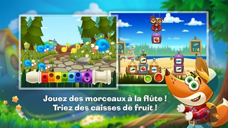 Le voyage de Tim le renard est un jeu amusant et coloré dans lequel le joueur aide un petit renard à préparer son voyage, surmonter des défis comme naviguer dans des broussailles hautes et traverser des rivières, retrouver son chemin dans des labyrinthes ardus, résoudre des problèmes de maths et accomplir des objectifs intéressants. Au cours de ce voyage magique, Tim le renard rencontrera des amis, explorera des lieux tels qu'une clairière ensoleillée et une rive de sable, s'exercera en chargeant des légumes et jouera des airs à la flûte une note à la fois. Le jeu est conçu pour aider les enfants à développer des compétences en logique, mémoire, maths, capacité de concentration et en appréhension de l'espace. Il est idéal pour les enfants de 5 à 8 ans.