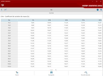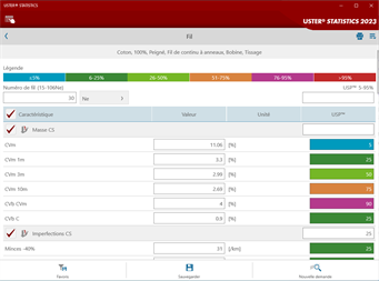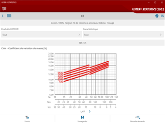 Options de référenciation uniques Les points forts des USTER® STATISTICS : ils couvrent une large palette de matières, de caractéristiques de qualité et de numéros de fil et permettent une référenciation adaptée aux exigences croissantes du secteur. Mais les données les plus largement utilisées pour différentes matières ne sont pas abandonnées pour autant.
