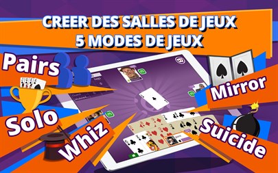 - Blitz Tournois pour 8 et 16 joueurs! - Joueurs réels, une grande communauté; - 5 modes de jeu: Pairs, Solo, Mirror, Whiz et Suicide; - Jouez avec vos amis de Facebook ; - Envoyez des cadeaux, obtenez Likes, montrez Votre Profile; - Des jetons gratuits chaque jour ; - Rencontrez des personnes inconnues ; Joignez le jeu de cartes Pique le plus social !